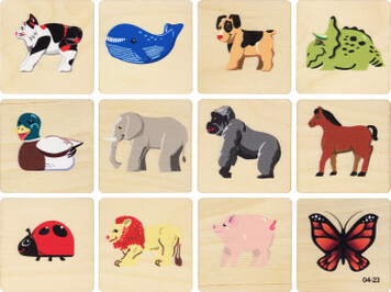 The first player turns up two tiles to look at the hidden picture. If the two pictures match, the player gets to keep them both and may play again. If the pictures do not match, they must be placed back down as they were and the next player gets to try.