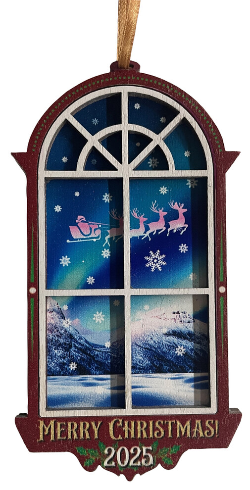 Our annual limited edition holiday ornaments have been designed and made and are ready to be shipped to you. This year features a northern lights scene out a snowy window as Santa's sleigh flies by.