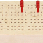 Our maple continuous cribbage board features a black-capped chickadee in a minimalist style. The board has two street by 120 hole configuration, pegging out holes, game counter holes, and a closable peg storage compartment on one end. Crafted from solid maple. This board measures approximately 4" wide by 14" long by 0.75" thick. Pegs (3 pegs each of 2 different colors, may vary) and instructions are included. Pegs are finished with a color dye stain and sealed with teak oil. Comes shrink wrapped. Instructions to play here.