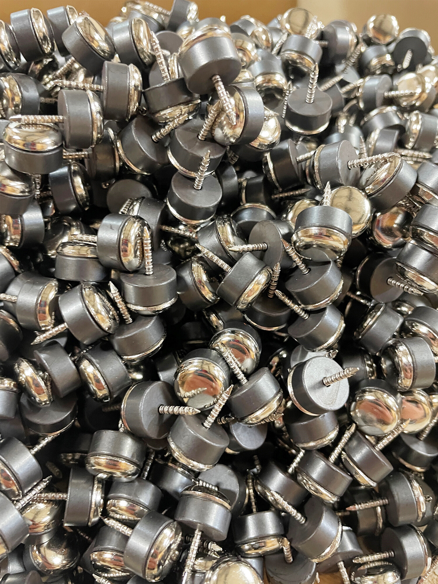 12 nails and 12 magnets for your own imagination. Nails & magnets measure approx. 0.5" in diameter and the nail head and magnet combine to approx. 0.25" thick. The peg of the nail fits through the center of the magnet.