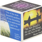 Friendship is truly rare and special. Quotes from Helen Keller, Ralph Waldo Emerson, Muhammad Ali and three others remind us of this. Great as a desk or shelf ornament! Each Friendship Block measures 2.75" cubed and is crafted from locally sourced, responsibly harvested pine.