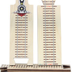Our train growth chart measures from 2 to 6 feet tall. Four 14" high by 4.81" wide by .5" thick measuring sections join together with puzzle-piece connections. Top piece has a hole for hanging the chart from a wall. Measuring sections are crafted from hardwood birch plywood and printed with 0.5" increments. This growth chart features a train engine at the top, railroad ties down the length of the chart, and finished with a clear water-based finish. Includes hanging instructions.