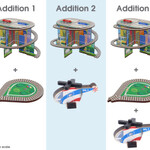 A smaller, single-track version of the double spiral but just as impressive! Reaching a height of more than 14", this spiral features four pull-off parking spaces in the turn-around loop at the top. Colorful graphics, printed in non-toxic ink, add to its busy aesthetic.