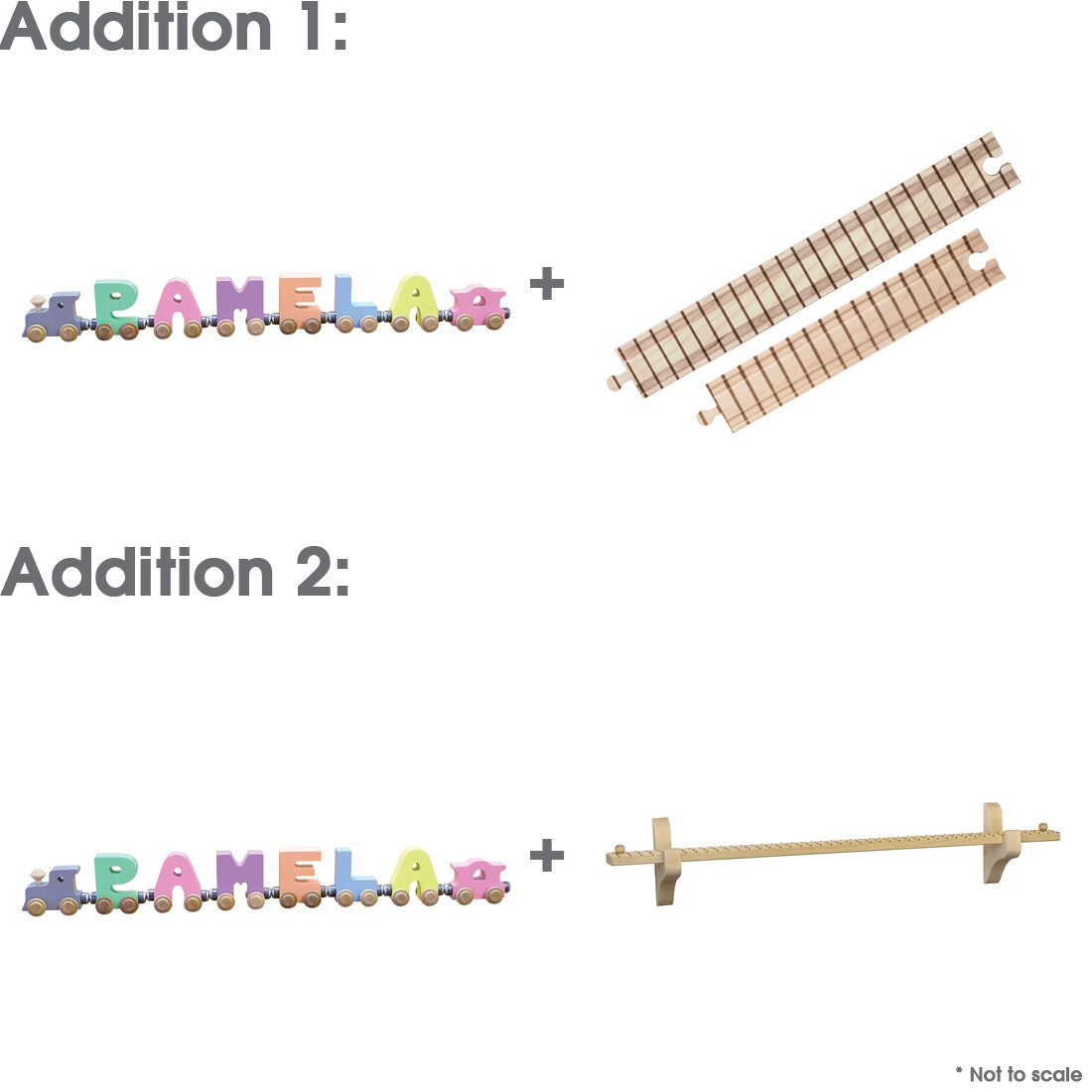 See the name, change the colors, add accessories, and more - just use our NameTrains builder!