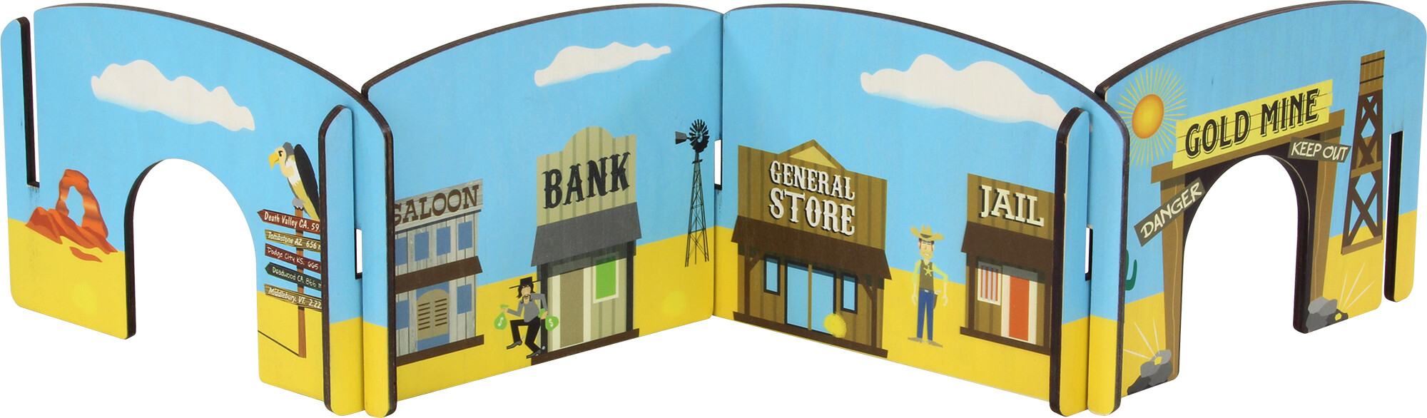 Build your own scene - an abandoned ghost town, outer space, or both! These play panels are an easy enhancement to your NameTrains set.