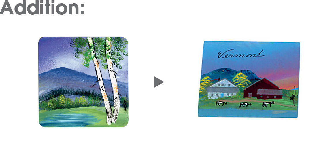 Handpainted Square Magnets by Luthera Rainville feature rural landscape scenes in various seasons. No two are alike. The silhouette cut Square Magnet measures approximately 2.75" wide by 2.75" high by 0.25" thick and is crafted from locally sourced, responsibly harvested maple hardwood with a broad cut sheet magnet securely affixed to the back. Specify theme/season in note box. Please allow extra time for delivery.
