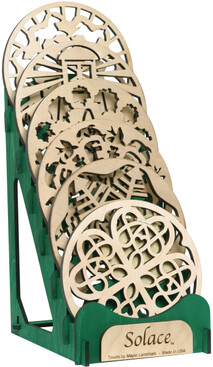 Solace Displays Solace trivet displays are a great way to show off our Solace line of products. The Solace trivet rack measures 18" high and 8" wide and has 6 tiers. Each tier holds 3 trivets. It comes free with your initial order of 18 trivets of the designs of your choice.