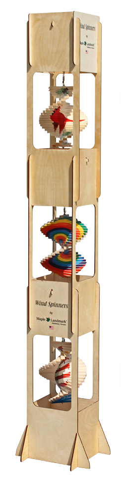 Wind Spinner 3-Tier Tower The Wind Spinner 3-Tier Tower measures 78" high by 13.5" square. It holds three spinners, with or without spinning motors. Motors not included. Ships flat with assembly instructions. Free with an initial order of 50 wind spinners or more.